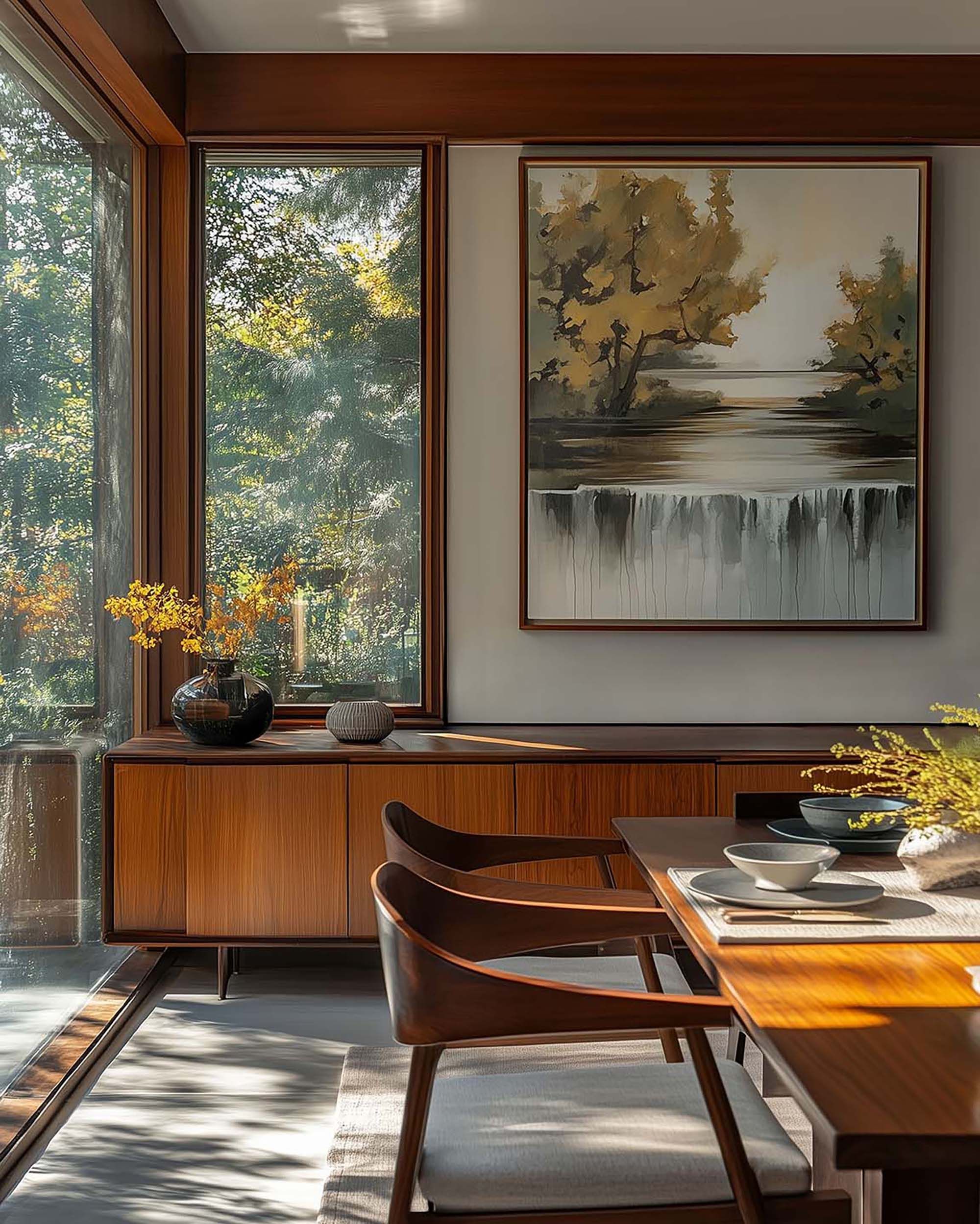 | Features | Wood Wall Paneling,Built-in Sideboard,Warm Daylight,Floor-to-ceiling Window,Minimal Styling,Large Wall Frame |