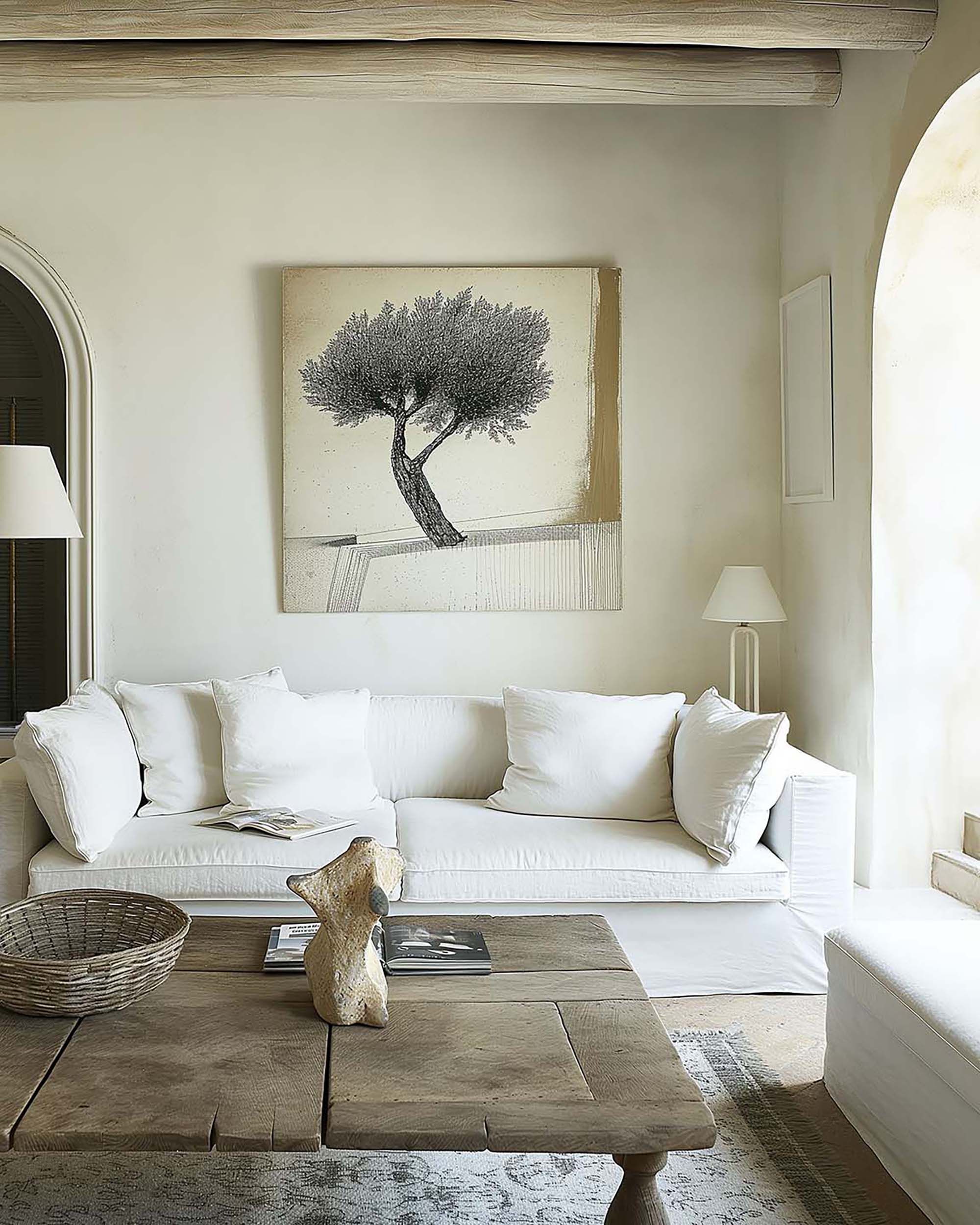 | Features | Soft Daylight,Arched Doorway,Large Wall Frame Above Sofa,Exposed Ceiling Beam,Neutral Wall,Textured Rug,Cozy Seating Area |