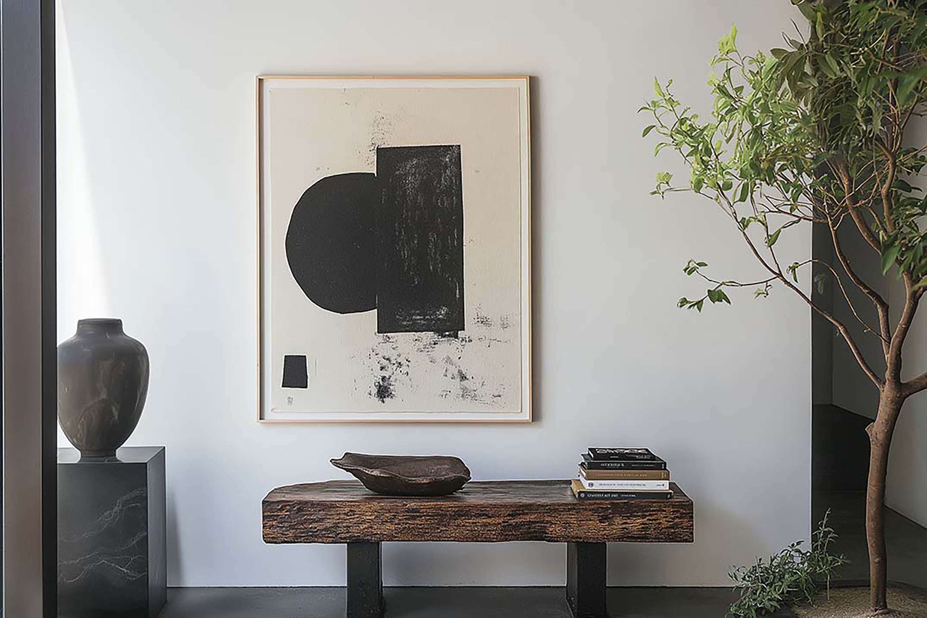 | Features | Natural Light,Neutral Decor,Wall-mounted Frame,White Wall,Rustic Wood Bench,Minimal Styling |