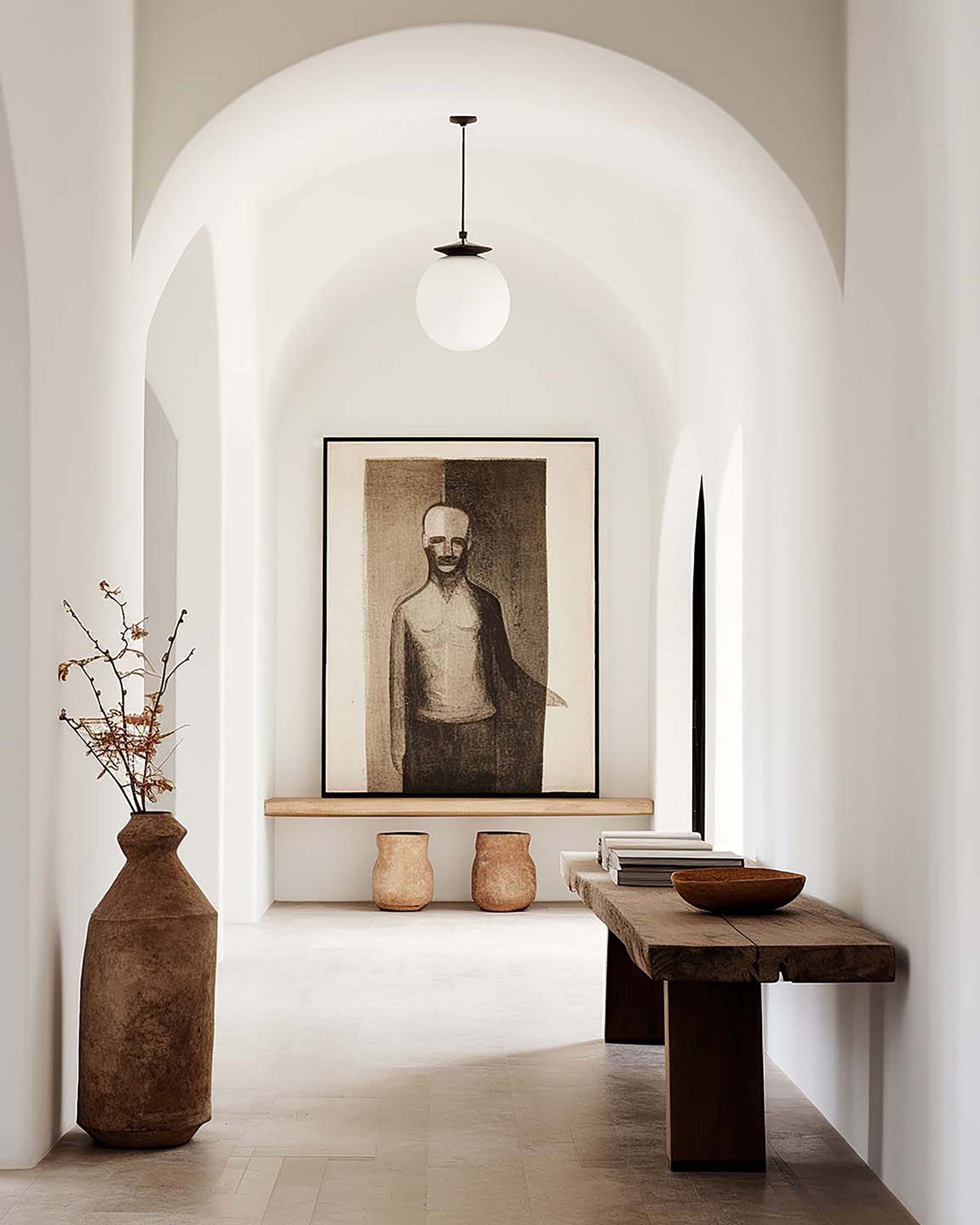| Features | Soft Daylight,Neutral Palette,Arched Doorway,Built-in Wall Niche,Arched Ceiling,Globe Pendant Light,Plaster Wall |