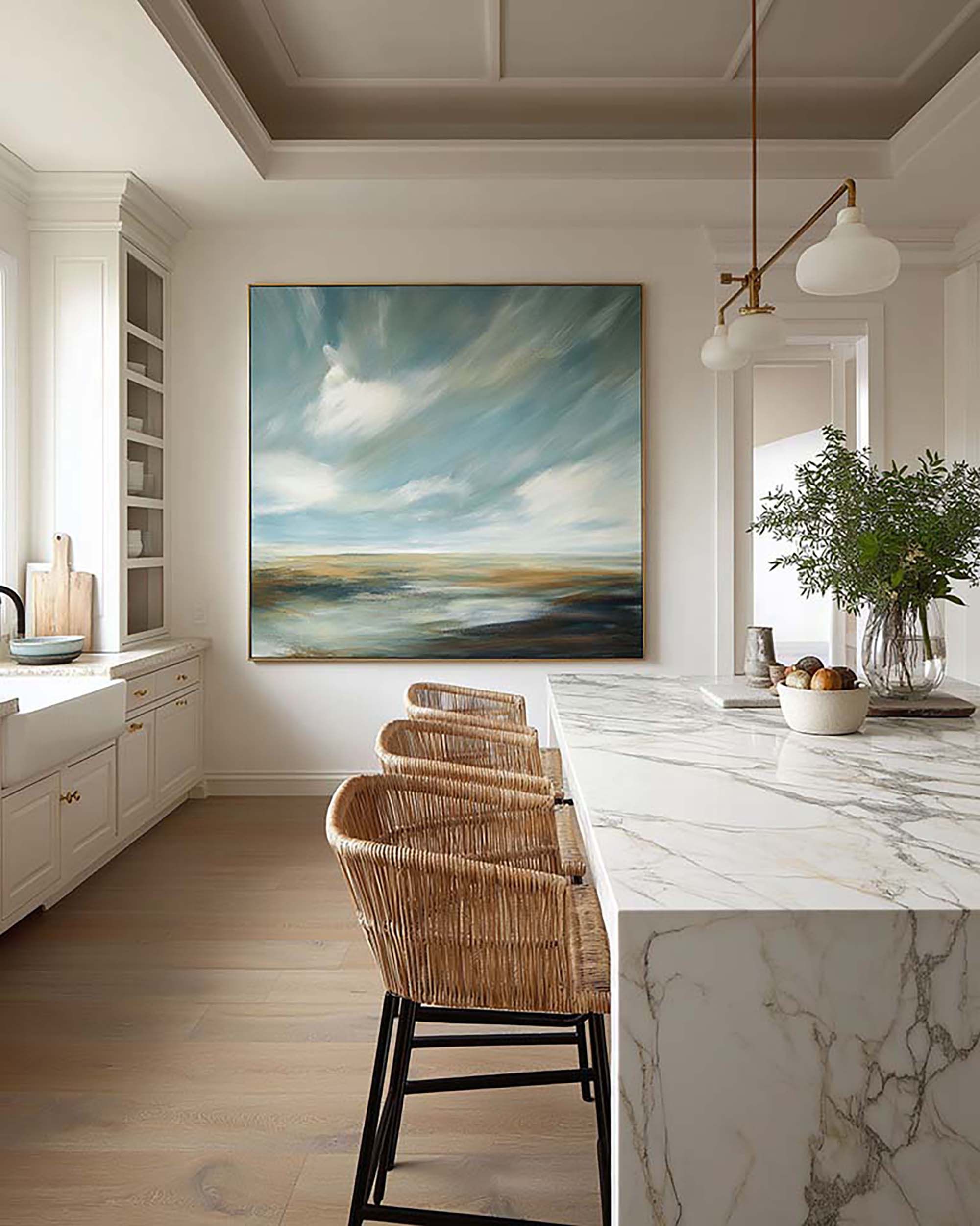 | Features | Clean Wall Space,Brass Pendant Lighting,White Millwork,Soft Natural Daylight,Coffered Ceiling,Built-in Cabinetry,Marble Waterfall Island |
