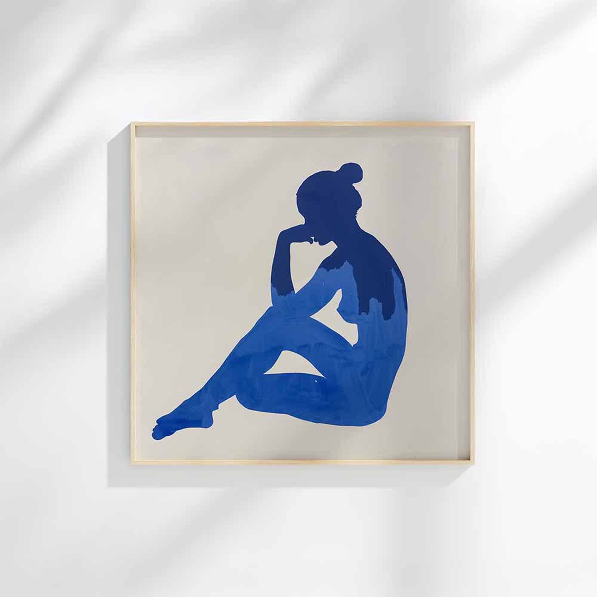 Elegant thin wood frame on a sunlit wall.